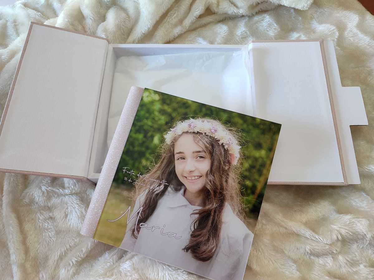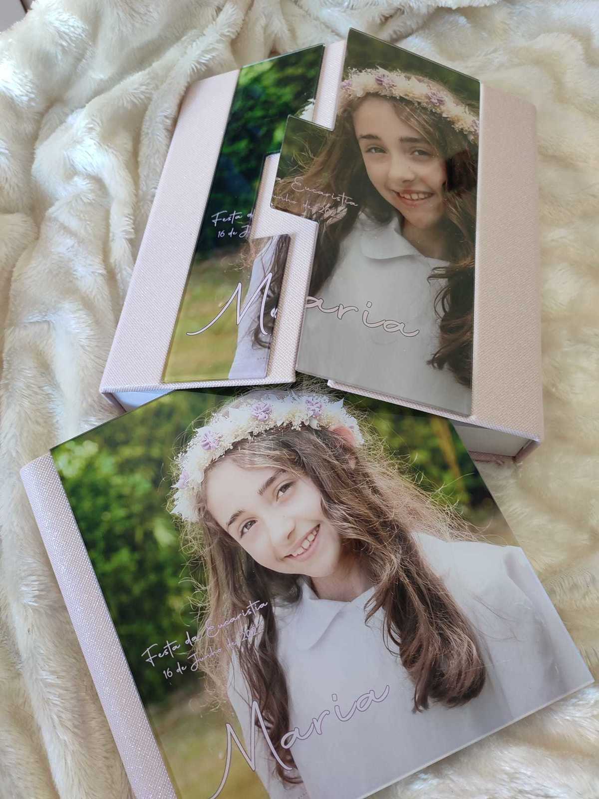 Paginação de album de Comunhão com caixa e capa em Acrilico