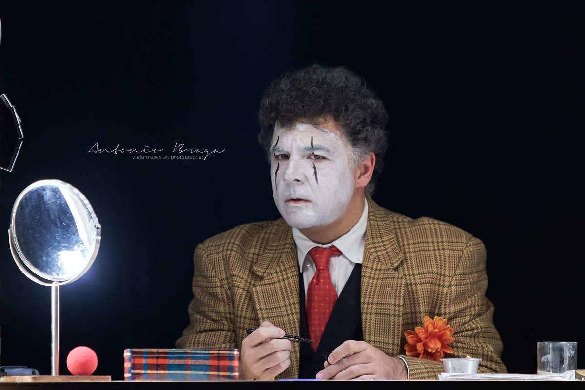 “O tempo que o palhaço passa em frente ao espelho, dentro do seu camarim, faz com que questione a vida e a própria existência, opondo o palhaço profissional ao palhaço da vida, ao caminho que desejamos e o caminho que nos é possível percorrer.